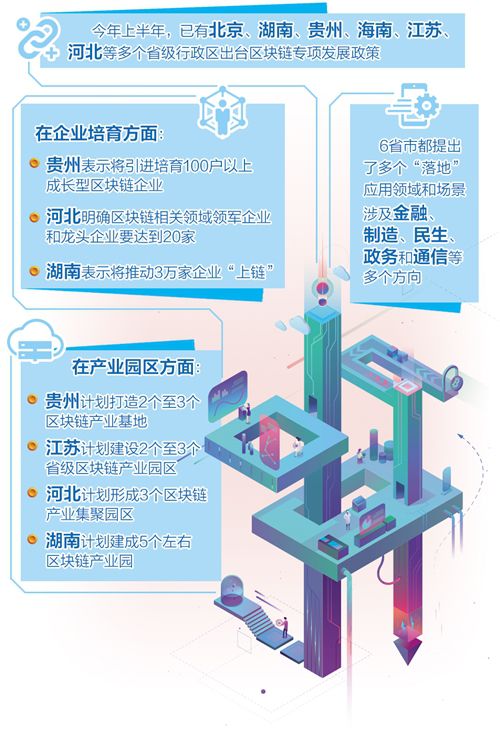 记者获悉,今年上半年,已有北京、湖南、贵州、海南、江苏、河北等多个省级行政区出台区块链专项发展政策。
